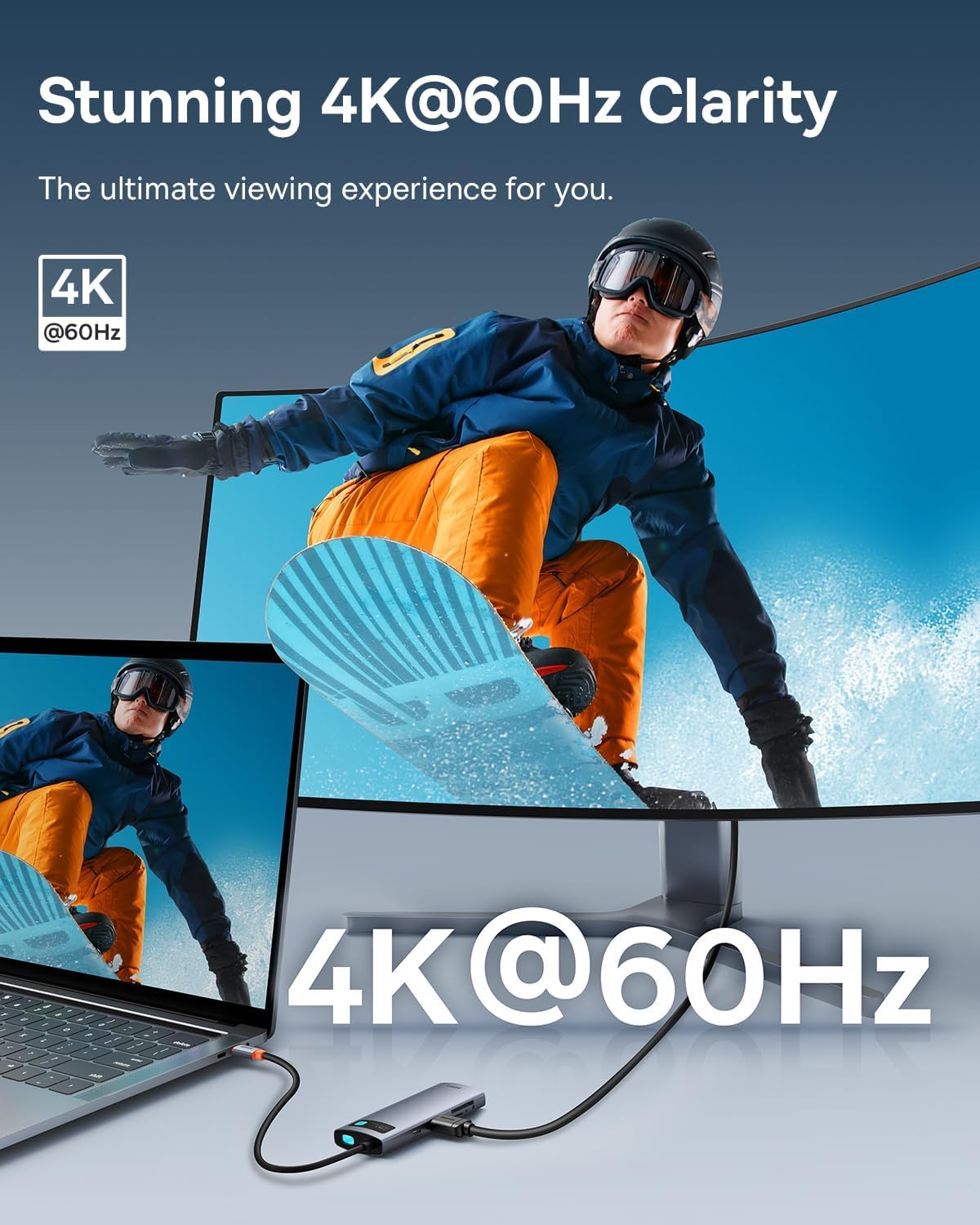 - 4K@60Hz video kakovost – Podpira ostro 4K ločljivost pri 60Hz ali 1080P pri 120Hz za tekoče predvajanje in delo s video vsebino