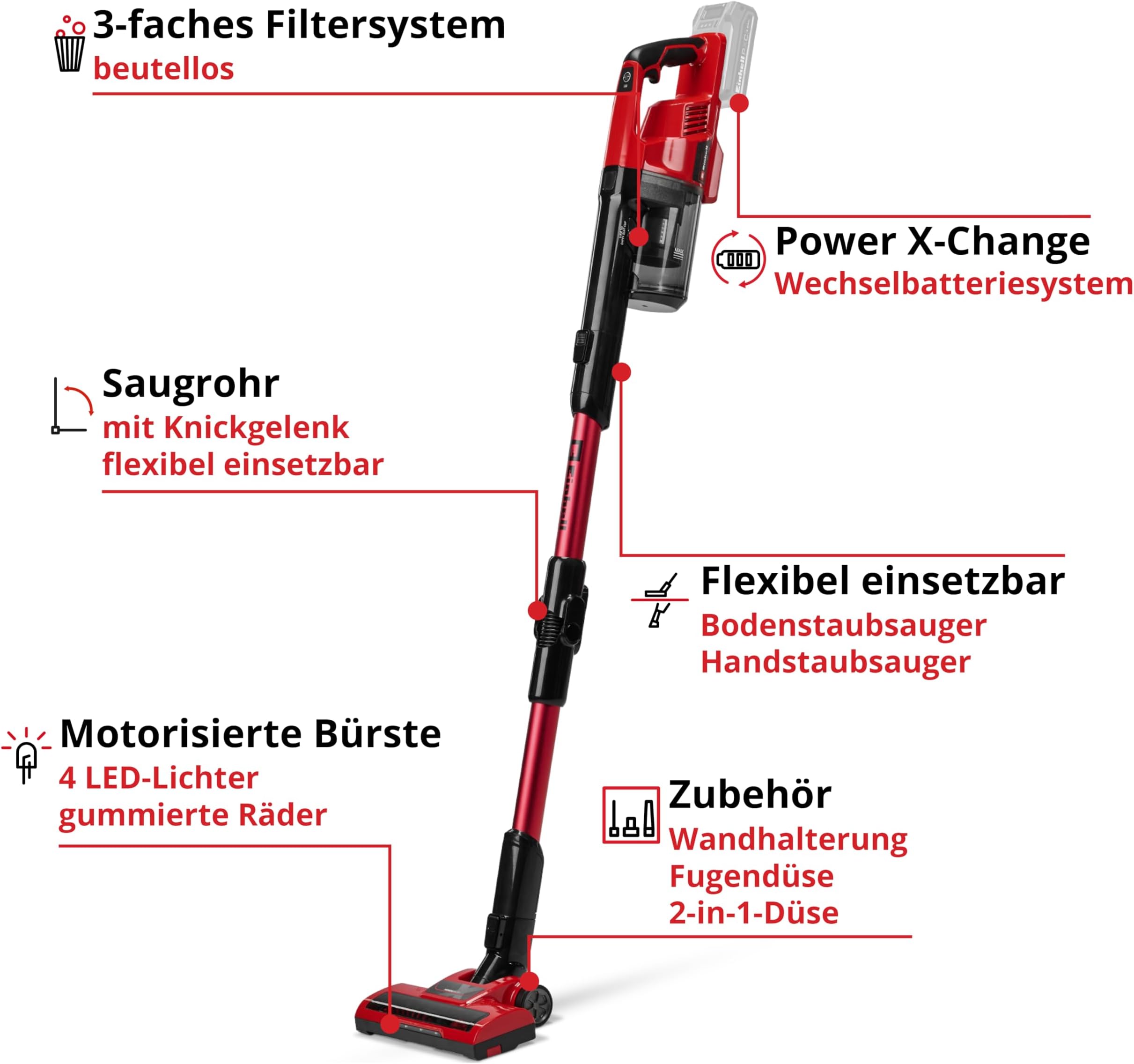 - Saugrohr s knickgelenkkom – Dosežete tudi težko dostopna mesta pod pohištvom in v ogljah