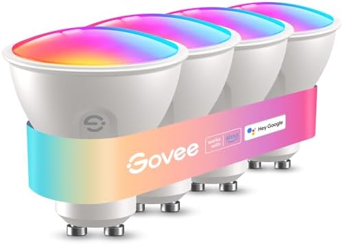 Govee GU10 Light Bulb, LED, RGBWW, Smart Bulb, Works with Matter, Alexa, Google Home, 400 lm, Wi-Fi, LED Lamp, Dimmable, Colour-Changing, 56 Scenes, Synchronisation with Music, Pack of 4