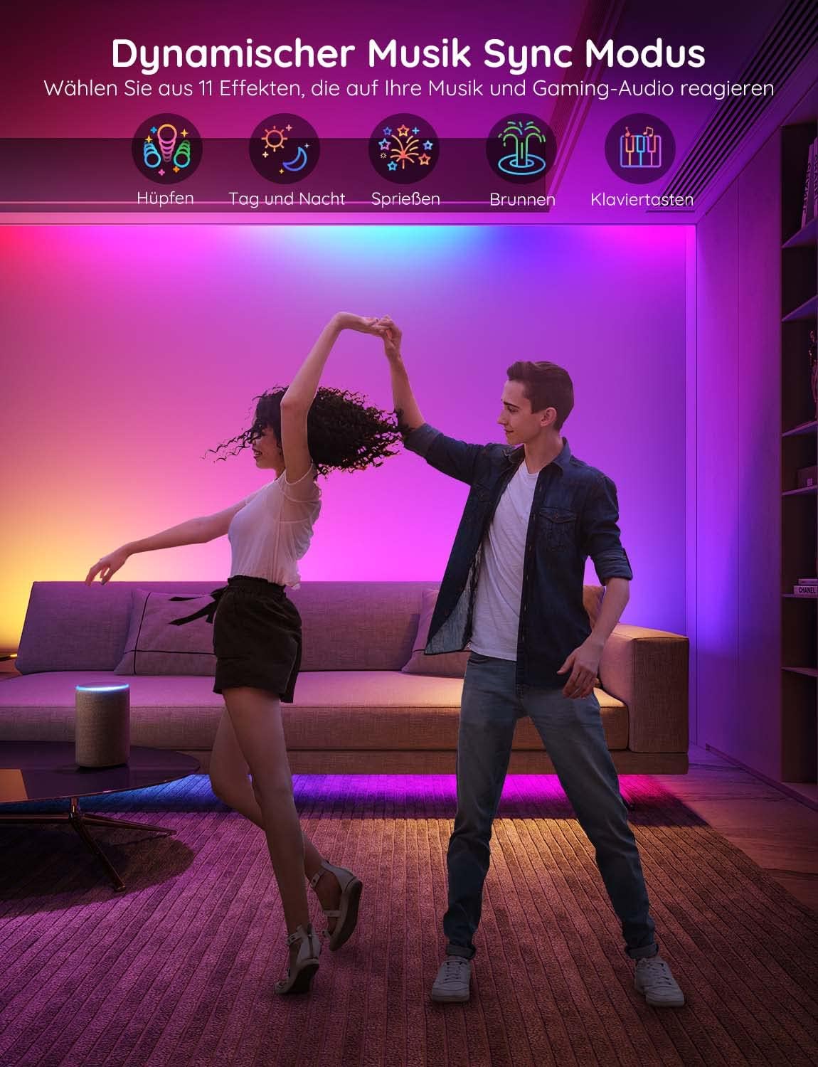 - 11 Naprednih Glasbenih Načinov – Vgrajen mikrofon z visoko občutljivostjo sinhronizira barve z ritmom glasbe
