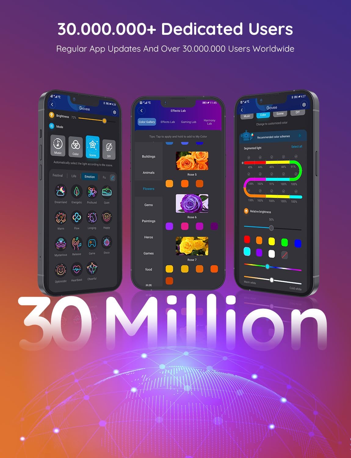 - Pametna Aplikacija – Govee Home aplikacija ponuja različne nastavitve, DIY efekte in skupnostne funkcije