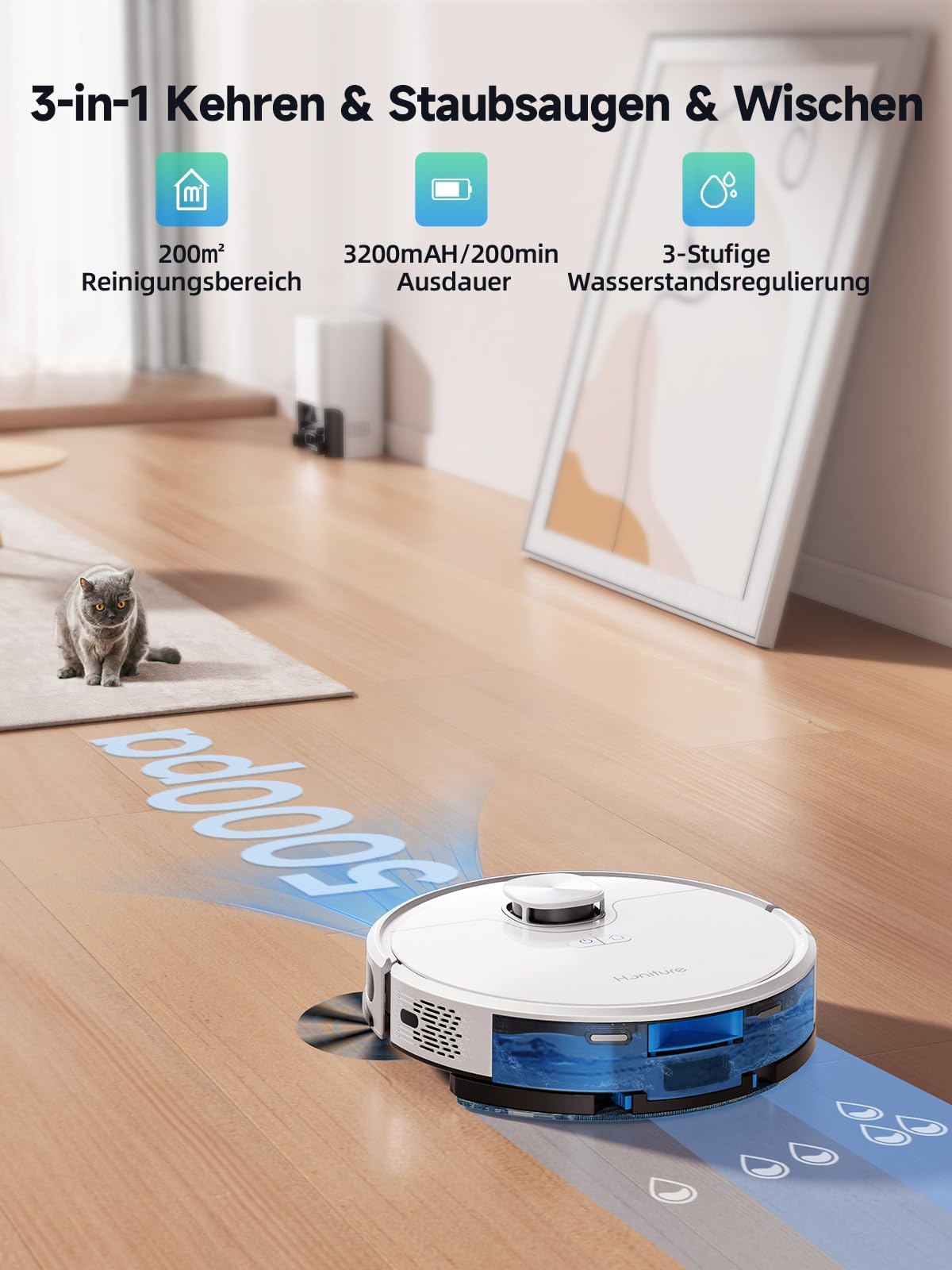 Odkrijte novo dimenzijo čistosti z robotskim sesalnikom HONITURE Q6 SE, ki združuje moč sesanja, pranje tal in pametno navigacijo. Ta napredni čistilni asistent je idealen za gospodinjstva s hišnimi ljubljenčki, različnimi vrstami tal in tistimi, ki cenijo udobje avtomatiziranega čiščenja.