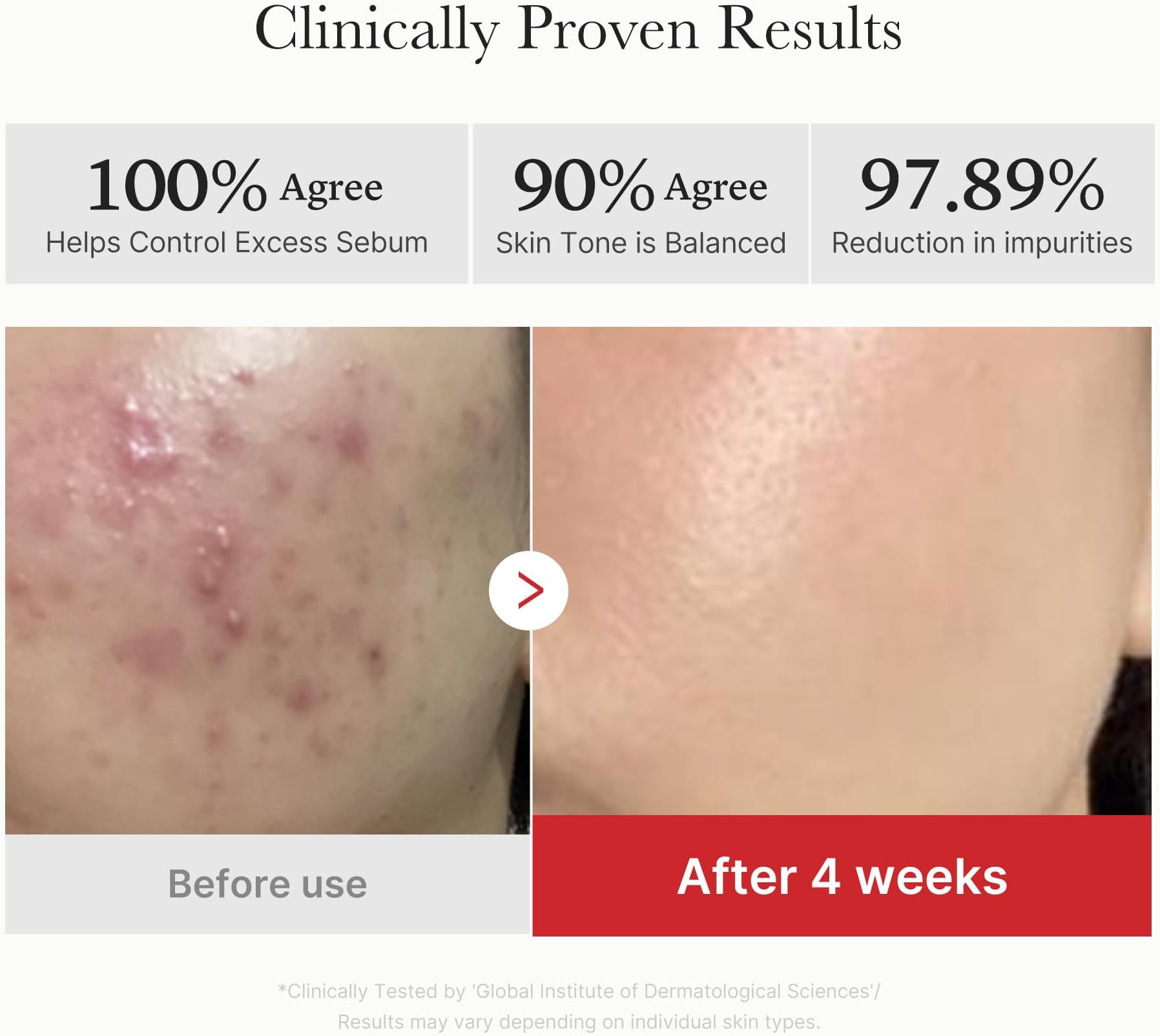 - Učinkovita akne-borba: Kombinacija treh aktivnih kislin (bernsteinska, salicilna in glikolna) cilja na vzrok akne in zmanjšuje izbruhe