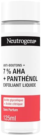 Neutrogena Anti-Button Flüssiges Peeling je nežna kemijska peeling formula, posebej oblikovana za kožo nagnjeno k aknei. Z 7% AHA (5% glikolske kisline in 2% limoniške kisline) ter panthenolom učinkovito odstrani mrtve celice in presežek sebuma, hkrati pa kožo pomirja in jo hidratizira.