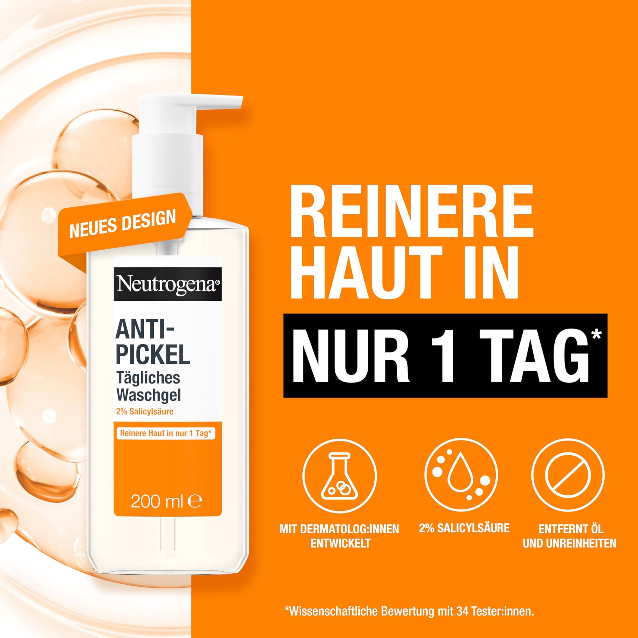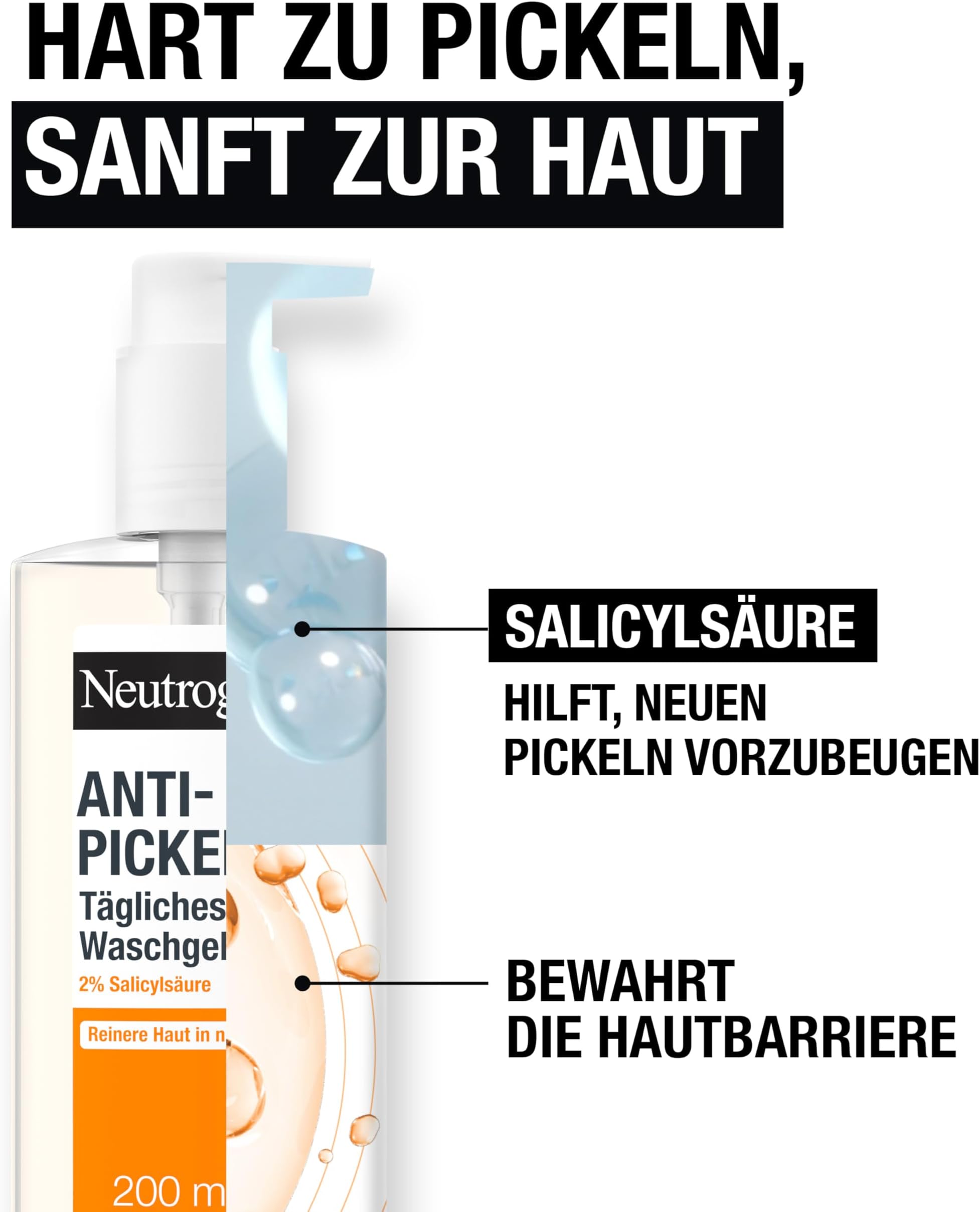 Neutrogena Anti-Pickel Tägliches Waschgel je nežna, a učinkovita dnevna čistilna rutina za problematično kožo. Gel s 2 % salicilne kisline (BHA) globinsko očisti pore in pomaga odstraniti maščobo ter nečistoče, ki povzročajo pimpke. Oljefree formula je primerna za vsakodnevno uporabo in vidno izboljša teksturo kože ter jo naredi bolj gladko in čisto.