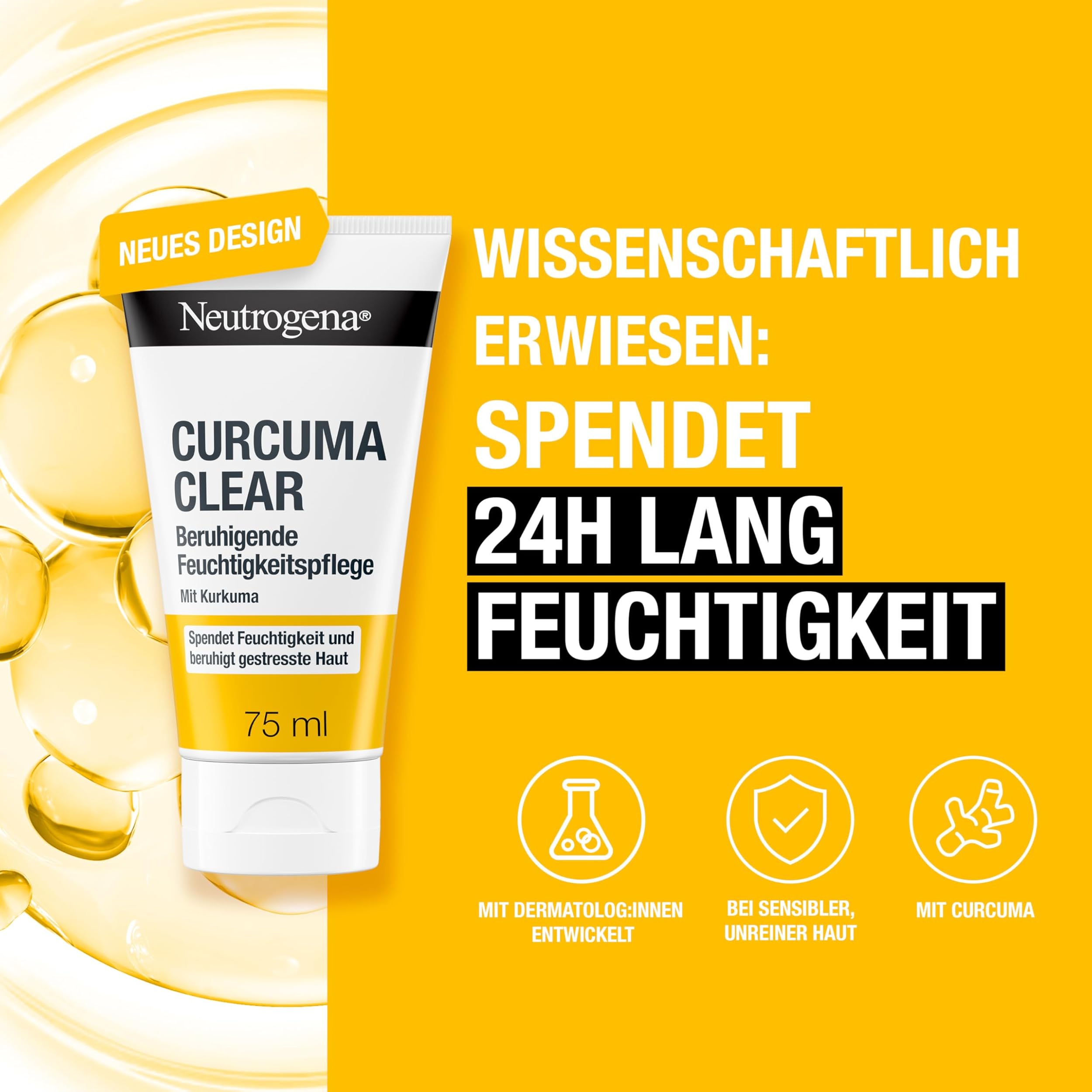 Neutrogena Curcuma Clear je lahka vlažilna krema za obraz, ki je posebej razvita za problematično in občutljivo kožo. Z naravno moč kurkume in znanstveno dokazano 24-urno hidracijo vam nudi umirjujočo nego, ki kožo pomiri in jo hkrati intenzivno vlažи.