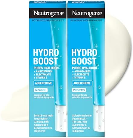 Neutrogena Hydro Boost Augencreme je nežna in učinkovita nega za občutljivo kožo okrog oči. S čistim hialuronom in bogatimi aktivnimi snovmi poskrbi za intenzivno hidracijo in vidno zmanjšanje temnih krogov ter oteklosti.