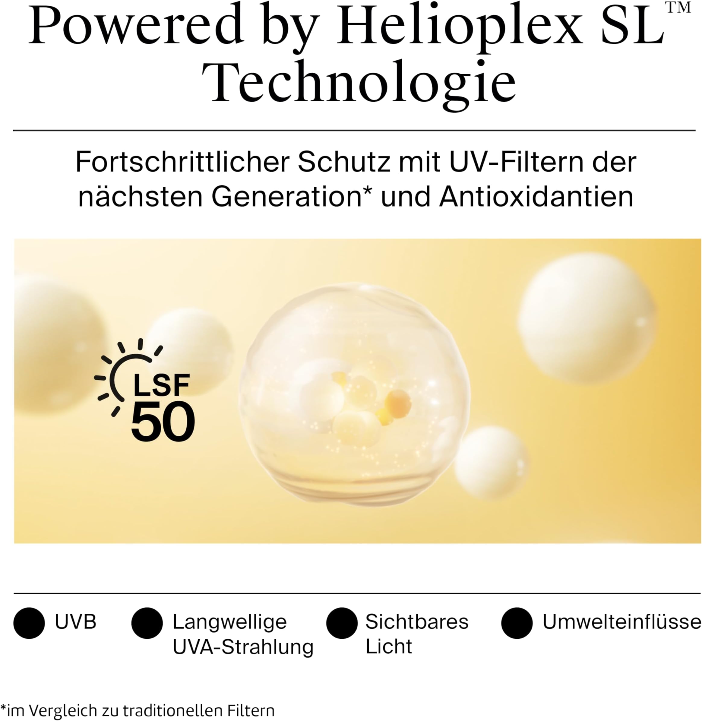 - Visoka zaščita LSF50+ – Breitbandschutz pred UVB/UVA žarki in svetlobno povzročeno staranjem kože