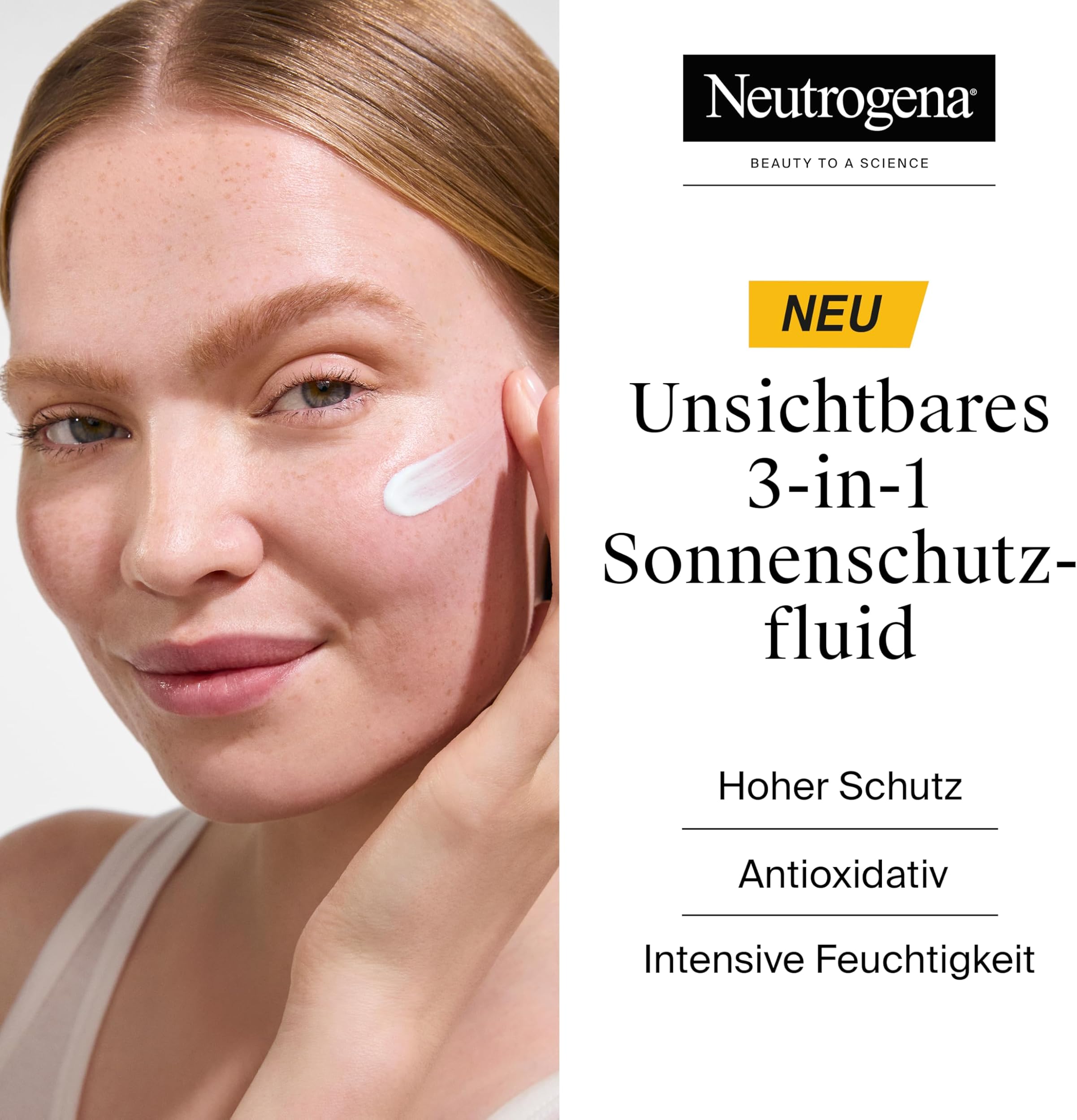 Neutrogena Ultra Sheer je ultralehan sonnenschutzfluid, ki se nevidno vpija v kožo in ne pušča belih sledi ali mastnega filma. Njegova revolucionarna Helioplex SL tehnologija zagotavlja celosten zaščito pred UVB in UVA žarki ter vidno svetlobo, medtem ko formula s panthenolom, pro-ceramidi in vitamini C in E intenzivno hidratira in okrepi kožno bariero.