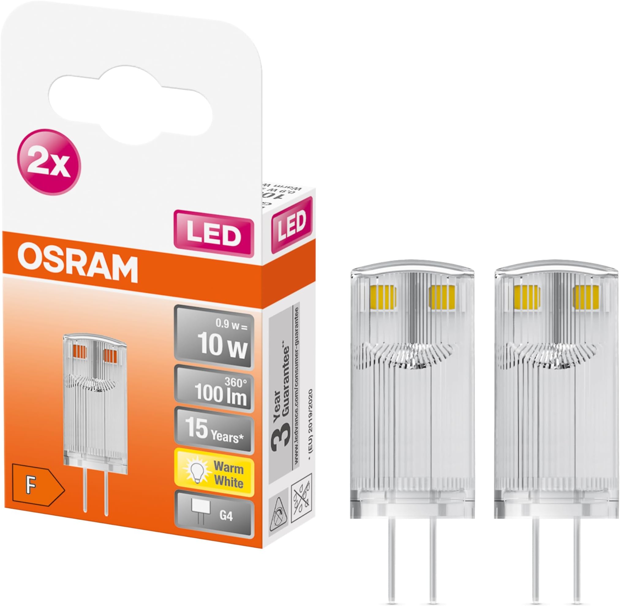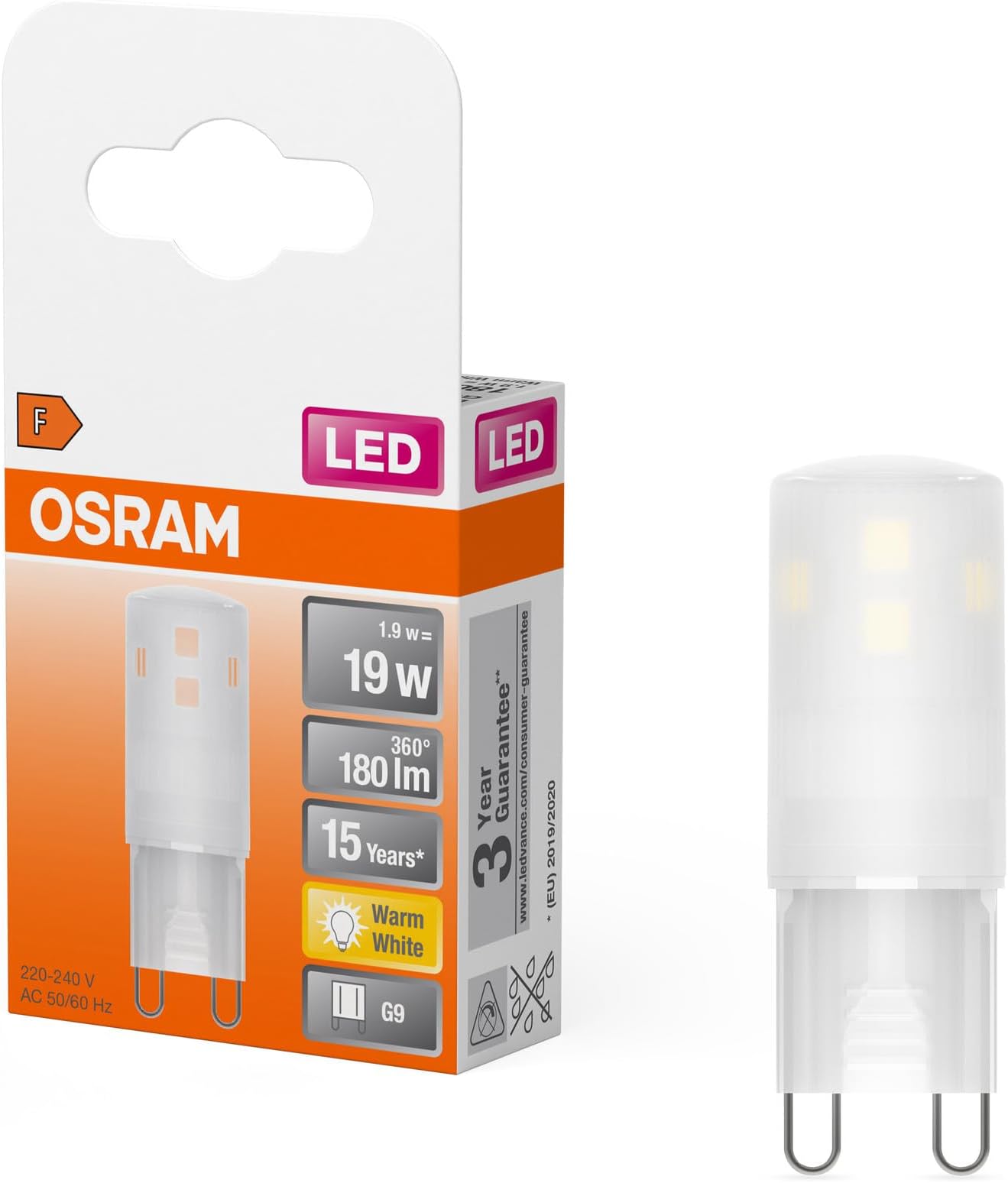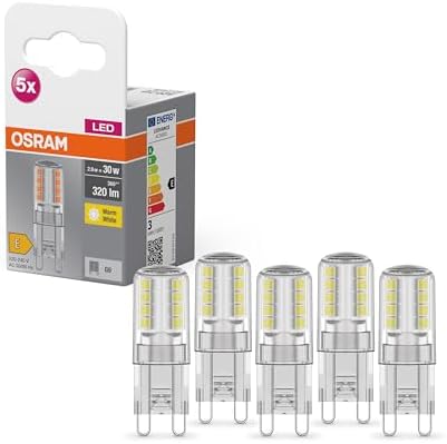 Osram Star PIN LED Light Bulb for G9 Base, Clear Glass, Warm White (2700K), 320 Lumens, Replacement for Conventional 30W Bulbs, Non-Dimmable, Pack of 5