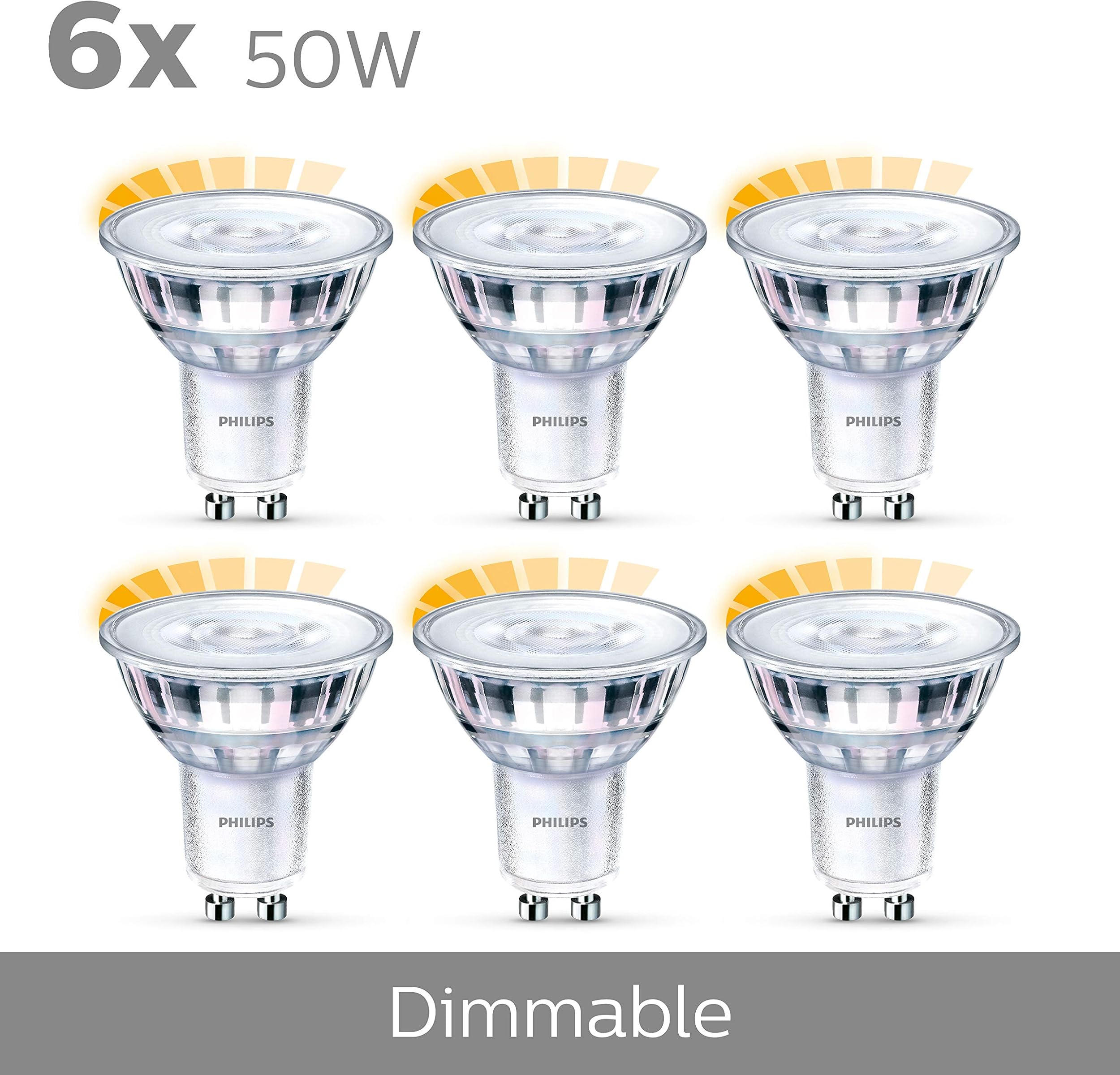Philips LED WarmGlow žarnica z naravnim toplim svetom je idealna izbira za udobne in toplo osvetljene prostore. Ta paket vsebuje 6 žarnic s podnožjem GU10, ki nadomestijo tradicionalne 50W žarnice in nudijo do 90% varčevanja energije.