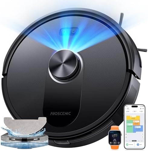 Proscenic Q10 Robot Vacuum Cleaner with Wiping Function, 8000Pa 200min Vacuum Cleaner Robot, Intelligent Laser Navigation with 5 Maps, Control via App Siri Alexa AppleWatch Remote Control for Floors