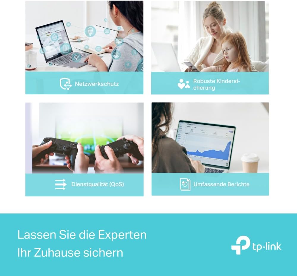 - Napredna varnost WPA3 – Vgrajena zaščita HomeShield identificira varnostne vrzeli in omogoča starševski nadzor ter blokiranje spletnih strani