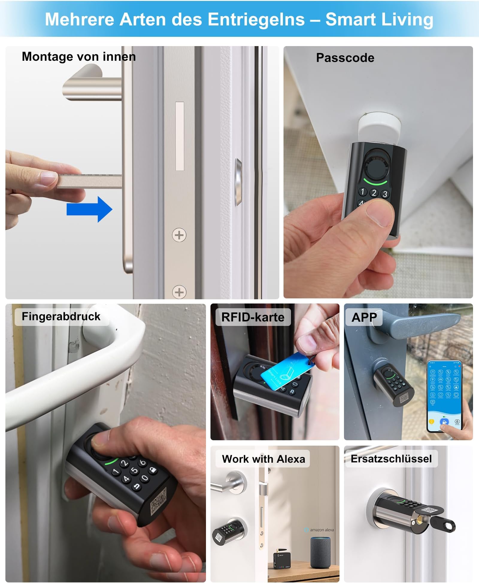 • 6-v-1 brezstični dostop: Odklep s prstnim odtisom, numerično kodo, RFID kartico, mehanskim ključem, aplikacijo in USB nujno sproščanje
