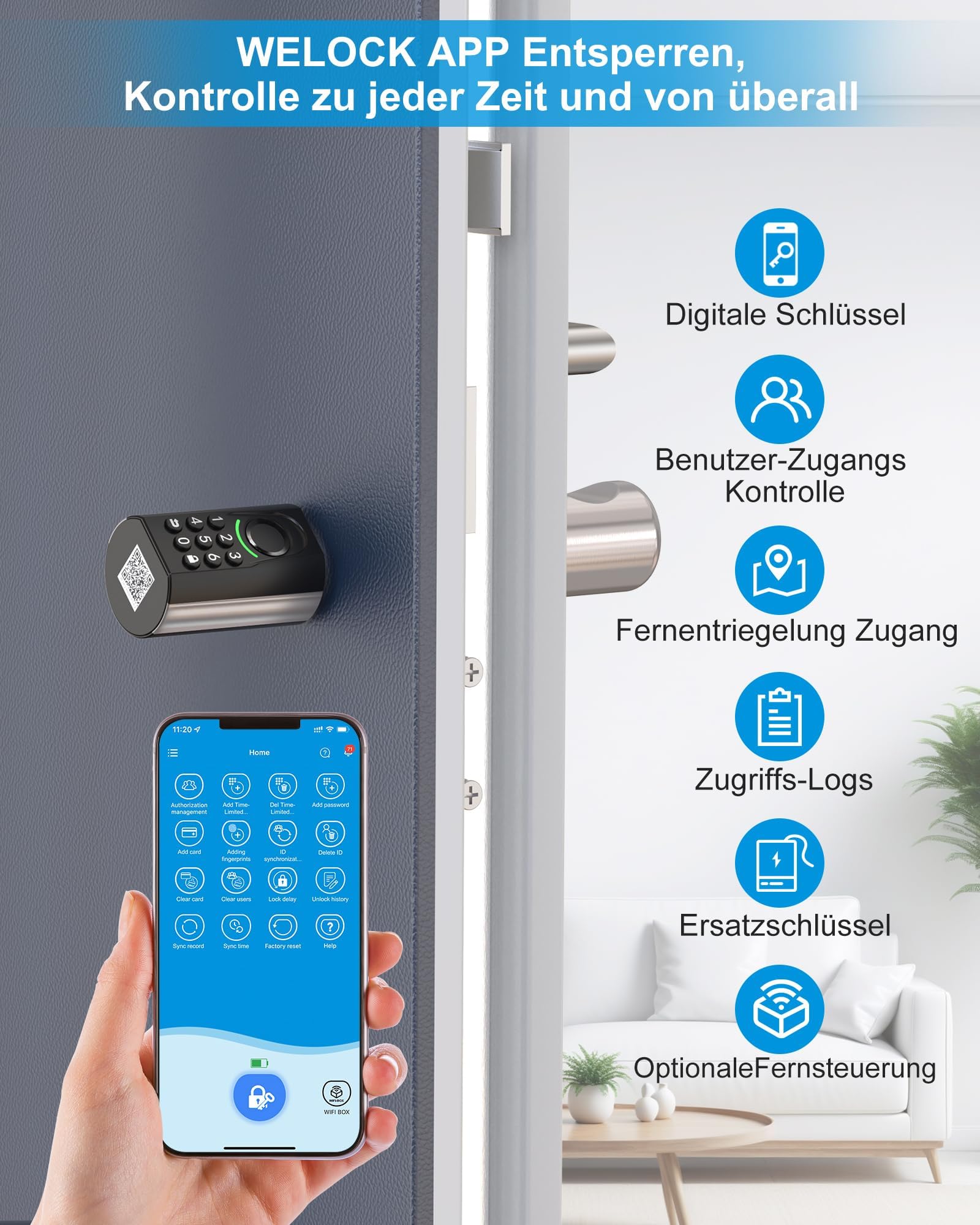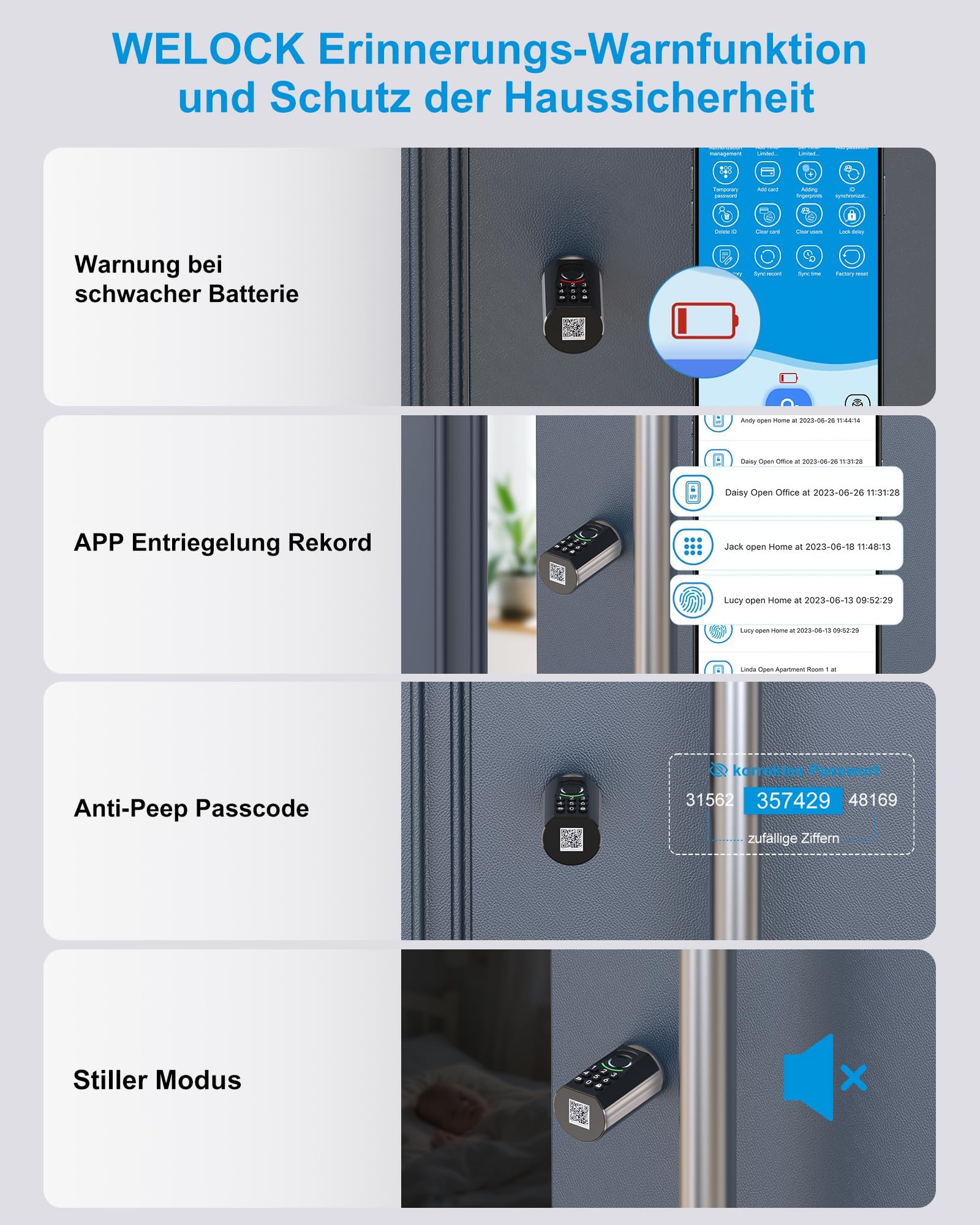 Welock ToucA71 Pametna Ključavnica Ključavnica s Prstnim Odtisom, Elektronska Ključavnica s Kodo Dostopa in RFID Kartico Pametna Ključavnica z Aplikacijo s Mehanskim Ključem IP65 Nastavljiv Cilindar Ključavnice za Vrata Debeline 50-100 mm