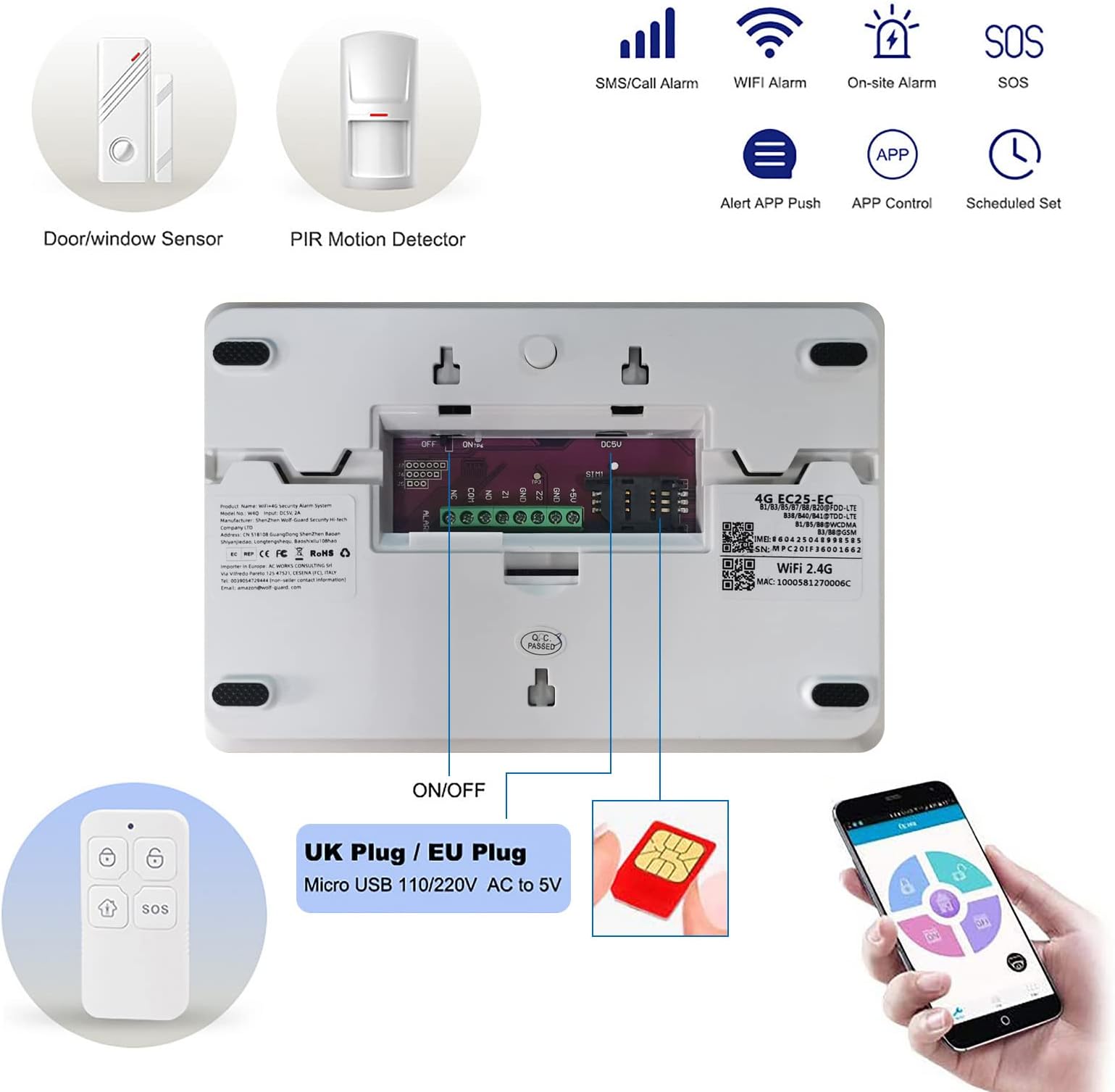 Popolna kontrola varnosti vašega doma je zdaj na dosegu roke. Ta napredni alarmni sistem kombinira WiFi in 4G povezavo, kar vam omogoča nadzor in upravljanje od kjerkoli na svetu preko pametne aplikacije Smartlife. Takoj po sproženem alarmu prejmete obvestila neposredno na pametni telefon.
